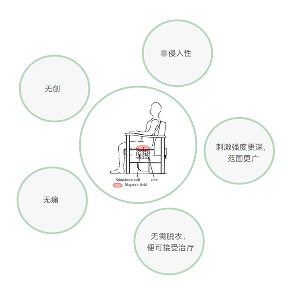 盆底磁刺激技術(shù),通過運(yùn)動(dòng)磁場(chǎng)的感應(yīng)電壓產(chǎn)生電流的刺激作用,刺激并激活盆底神經(jīng)產(chǎn)生神經(jīng)沖動(dòng),促進(jìn)盆底血液循環(huán),引起肌肉收縮,增強(qiáng)盆底肌肉的活性和力量,從而治療盆底功能障礙性疾病。與電刺激相比,無創(chuàng),無痛,更深更廣,更安全。