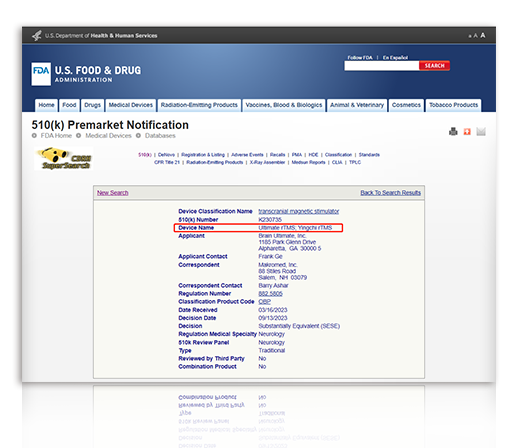 英智TMS成為首個國產經顱磁獲批FDA認證。